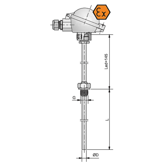 Resistenzthermometer mat Verbindungskapp, internem Insert a Lötverbindung - ATEX intrinsesch sécher *Néideg Schrëtt