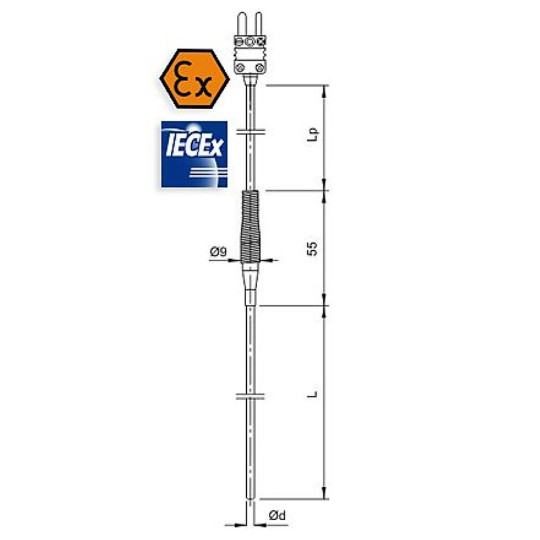 Verknäppt intrinsesch sécher ATEX jackéiert Thermoelement mat Mini-Stecker *Néideg Schrëtt