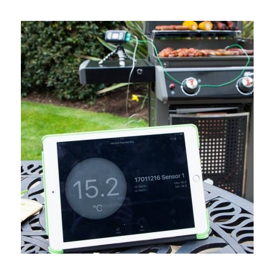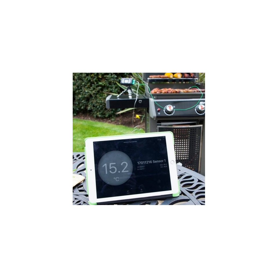 Et ass entwéckelt fir Temperaturen aus der Distanz ze iwwerwaachen. Iwwerdroung vun Temperaturdaten op Ärem iOS, Android oder Bluetooth drahtlosen Apparat iwwer eng sécher Verbindung bis 50 Meter.