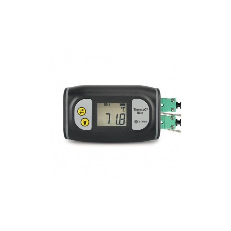 Waasserdicht op IP65, all Eenheet ass an engem ergonomesche Fall ënnerbruecht an huet e Backlit LCD-Bildschierm an 2 LEDs déi den Alarmstatus uginn. Fir Sonde passend fir ThermaQ Blue.