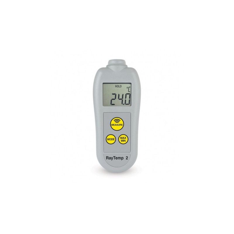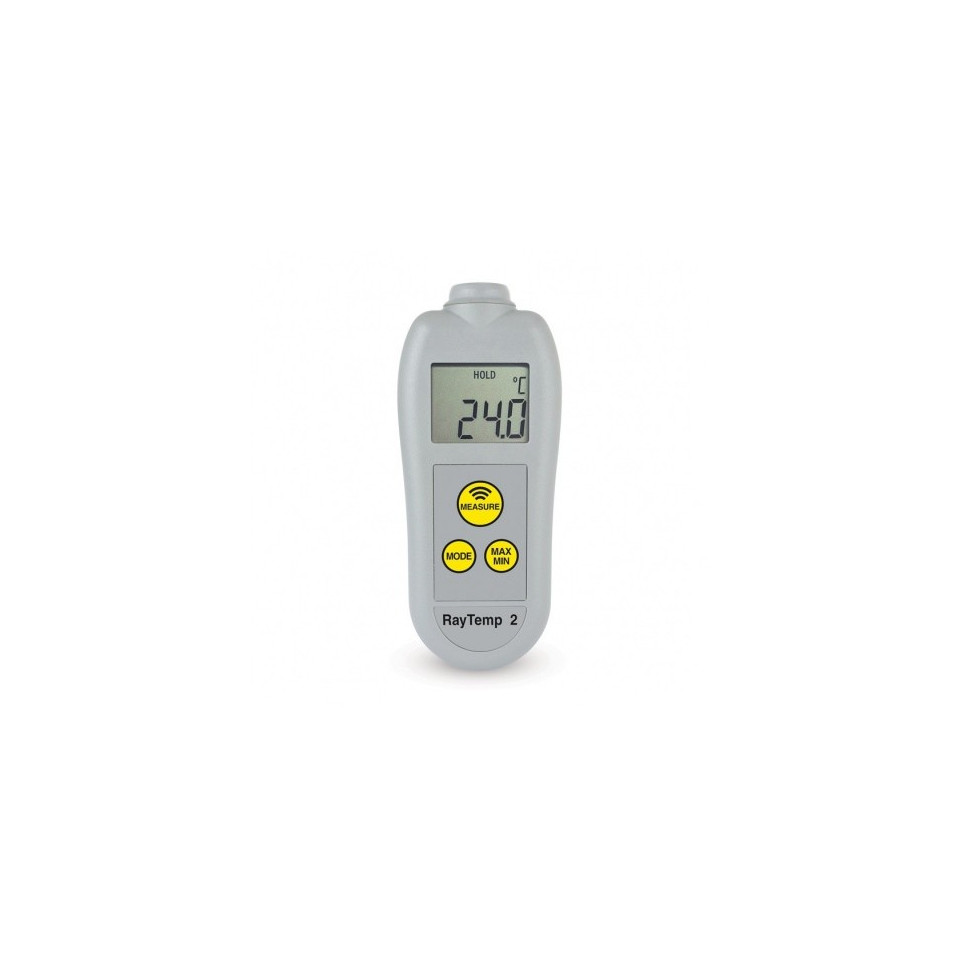 Le RayTemp® 2 dispose d'un clavier à trois boutons, incorporant des fonctions de mesure, de mode et max / min, une pression sur le bouton de mode permet à l'utilisateur de sélectionner °C / °F, d'afficher la température ambiante et la valeur d'émissivité.