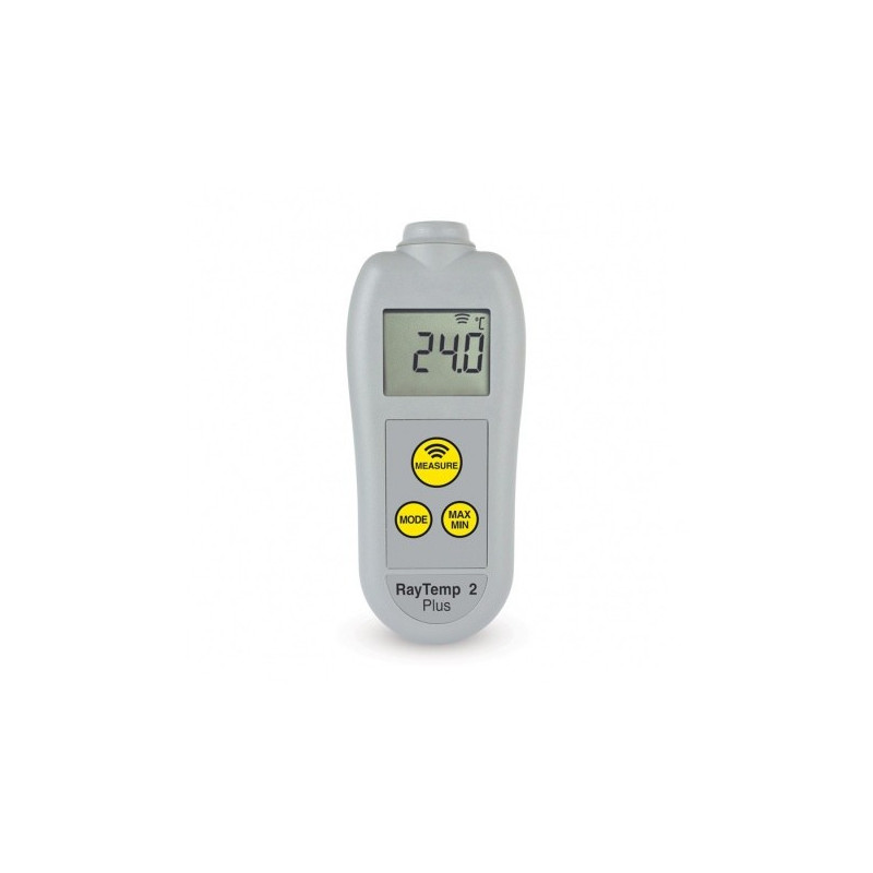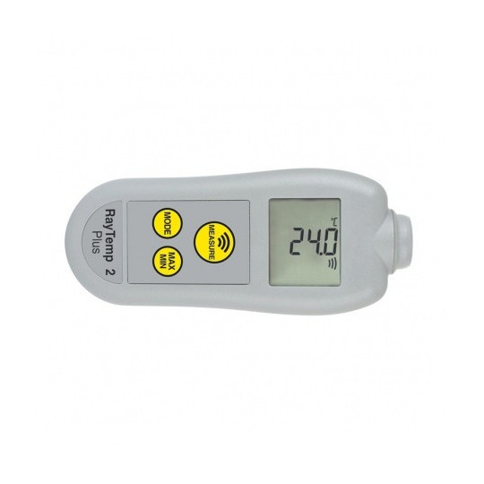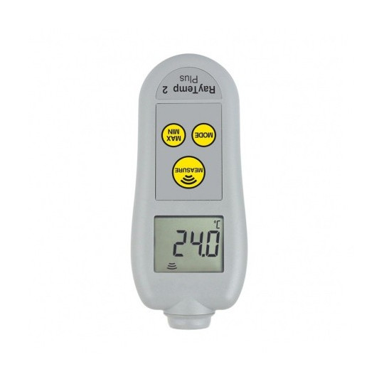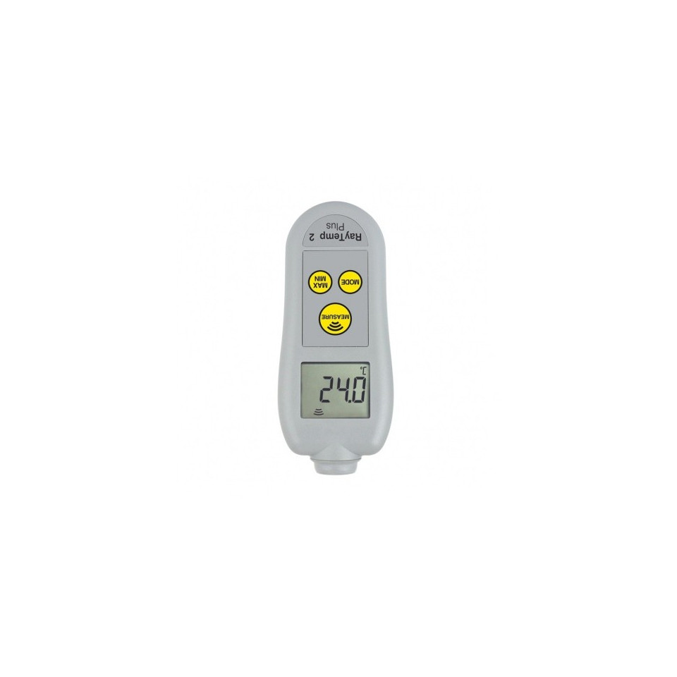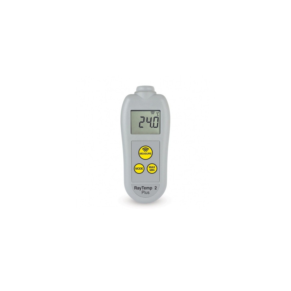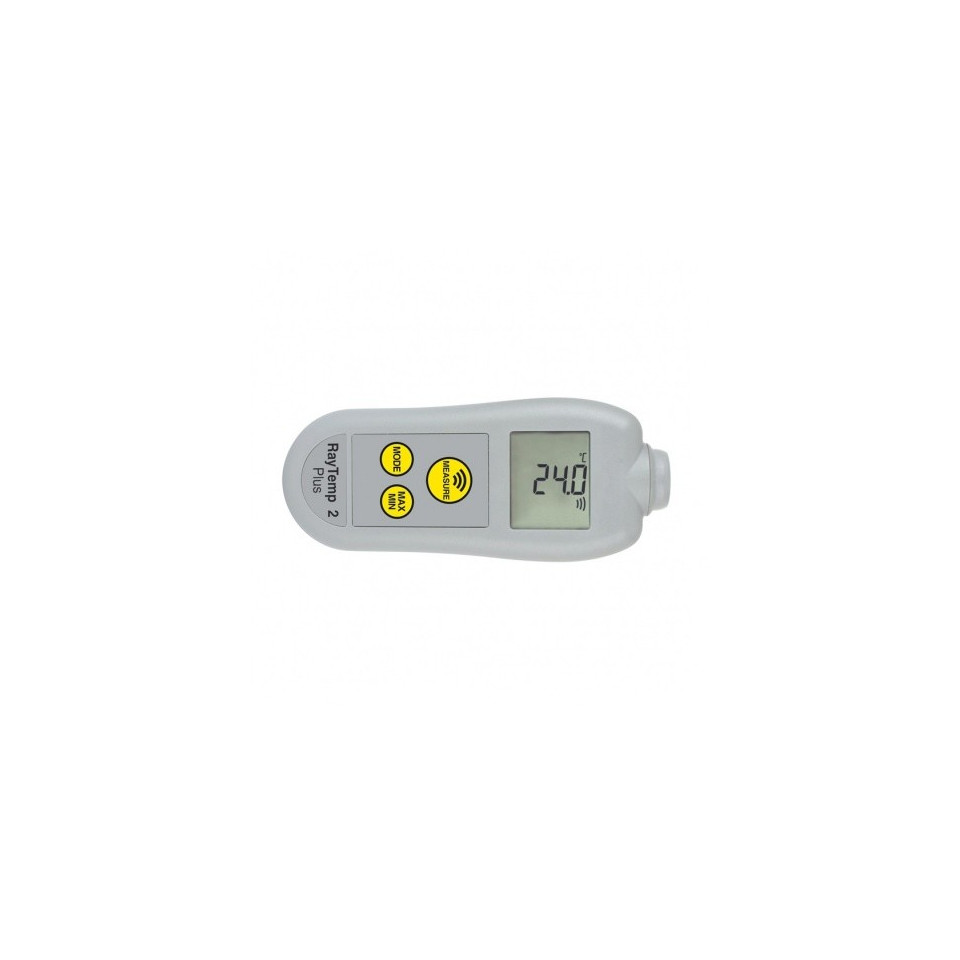 Thermomètre infrarouge RayTemp 2 Plus -, le thermomètre infrarouge sans contact RayTemp 2 Plus intègre toutes les fonctionnalités du RayTemp 2, mais avec l'ajout d'un affichage rotatif à 360 °, d'un rétroéclairage et d'une émissivité réglable.