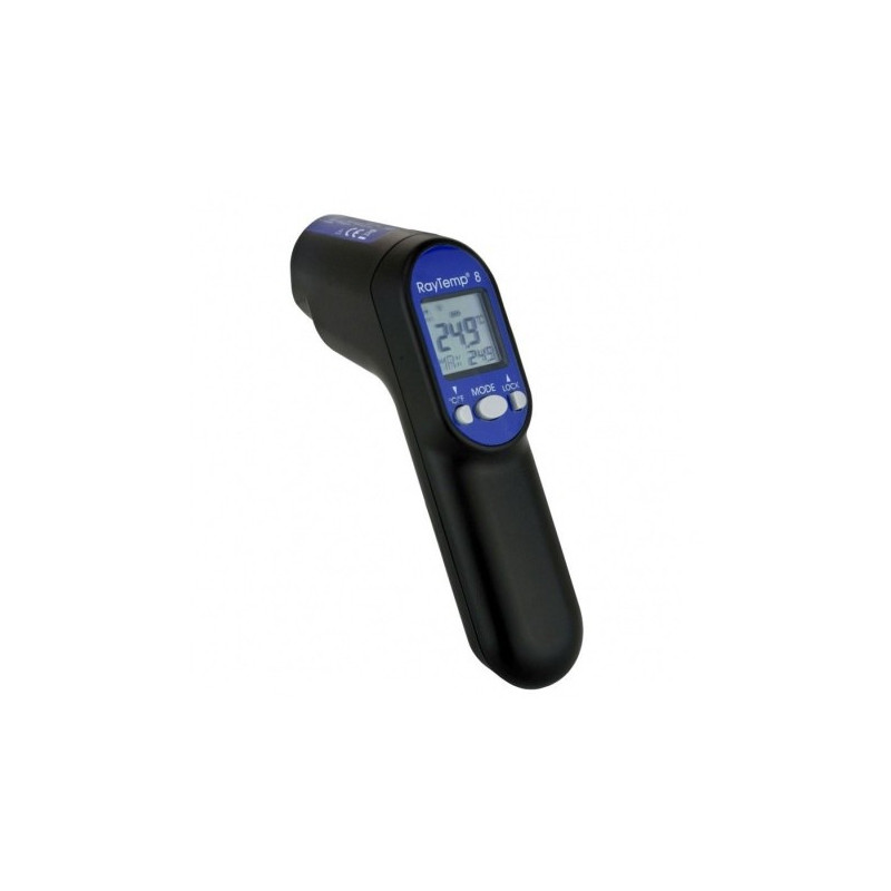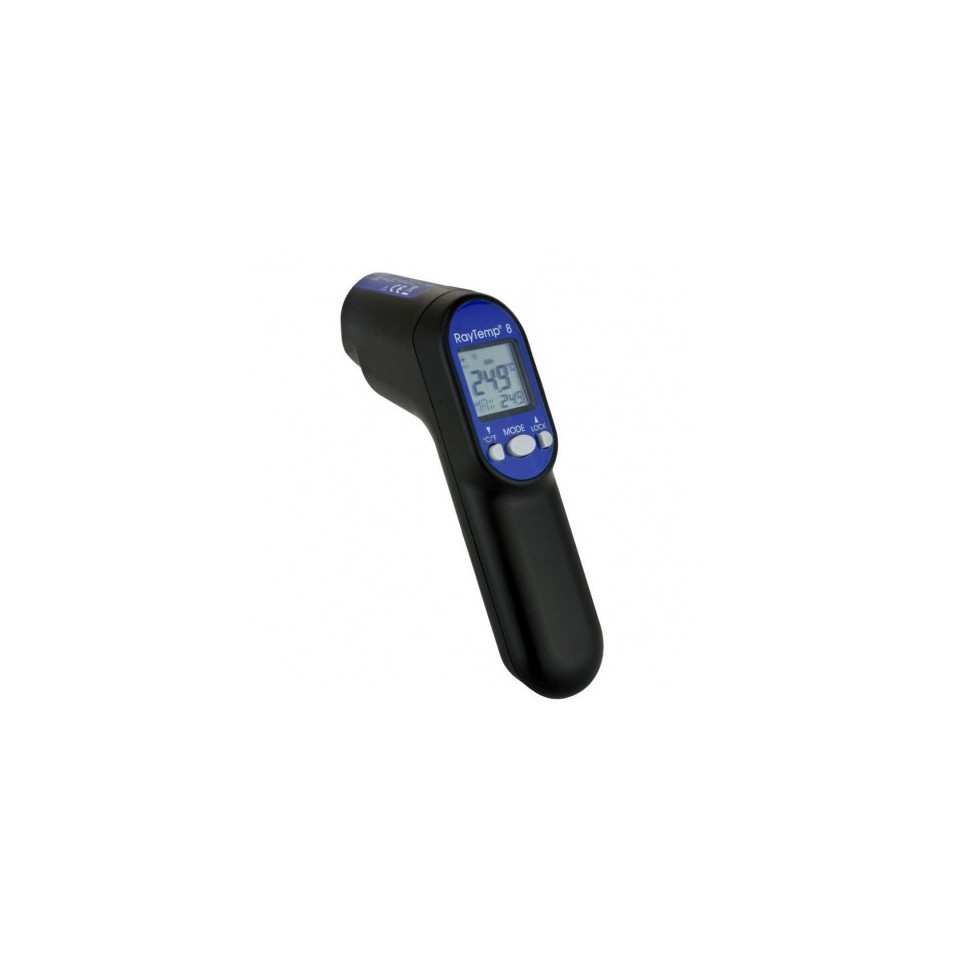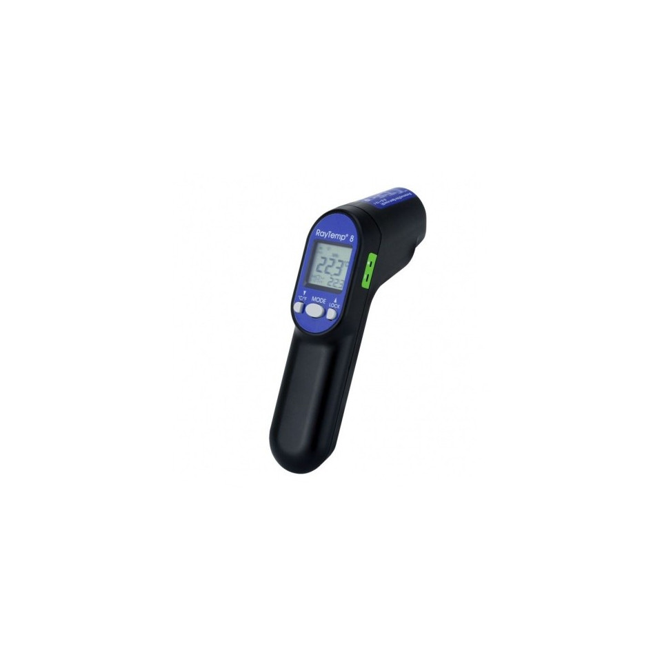 Le thermomètre infrarouge RayTemp 8 est compact, en forme de pistolet, léger et facile à utiliser. Visez simplement, puis appuyez sur la gâchette pour afficher la température de l'élément à mesurer. L'écran LCD donne une lecture numérique de la température sur une plage de -60 à 500 ° C.