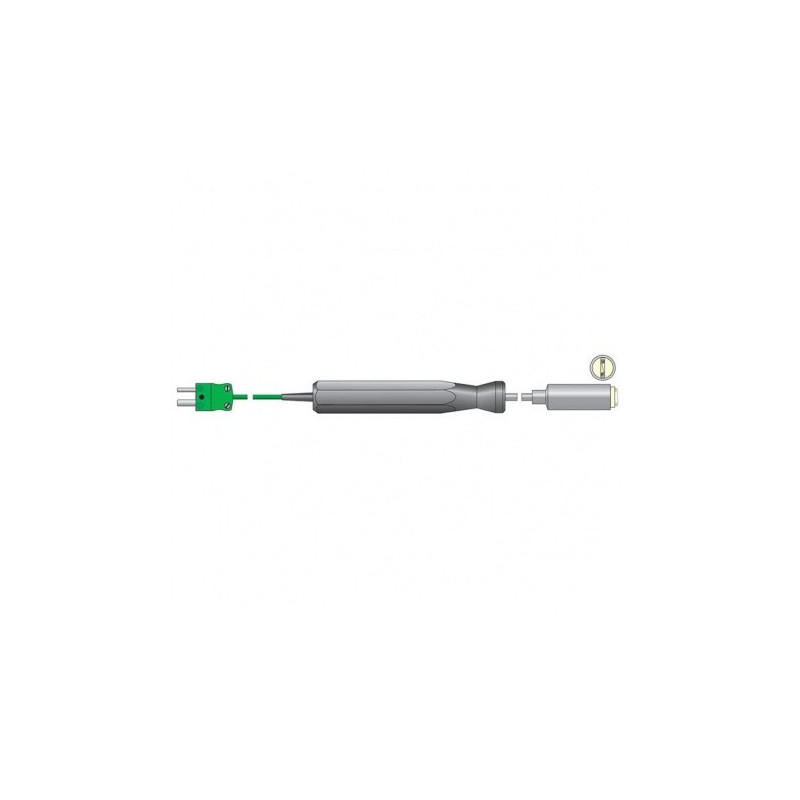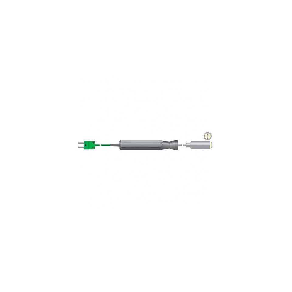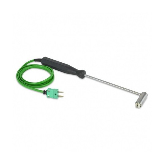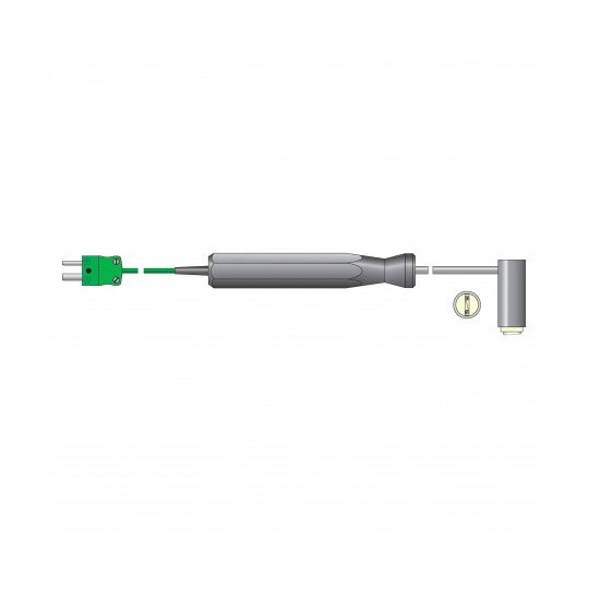 Héichtemperatur Probe - Dës robust héijer Temperatur Uewerflächesond ass ideal fir d'Temperatur vu Kachplacken, Hotplaten an aner Uwendungen ze moossen, déi en héicht Temperaturmiessberäich erfuerderen. D'Äntwertzäit ass manner wéi eng Sekonn.