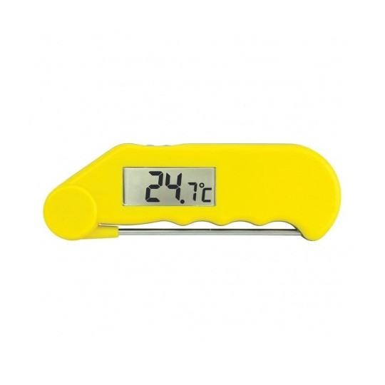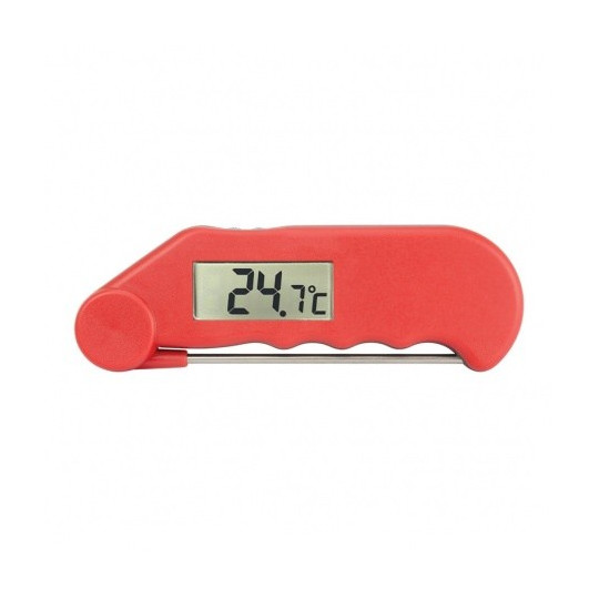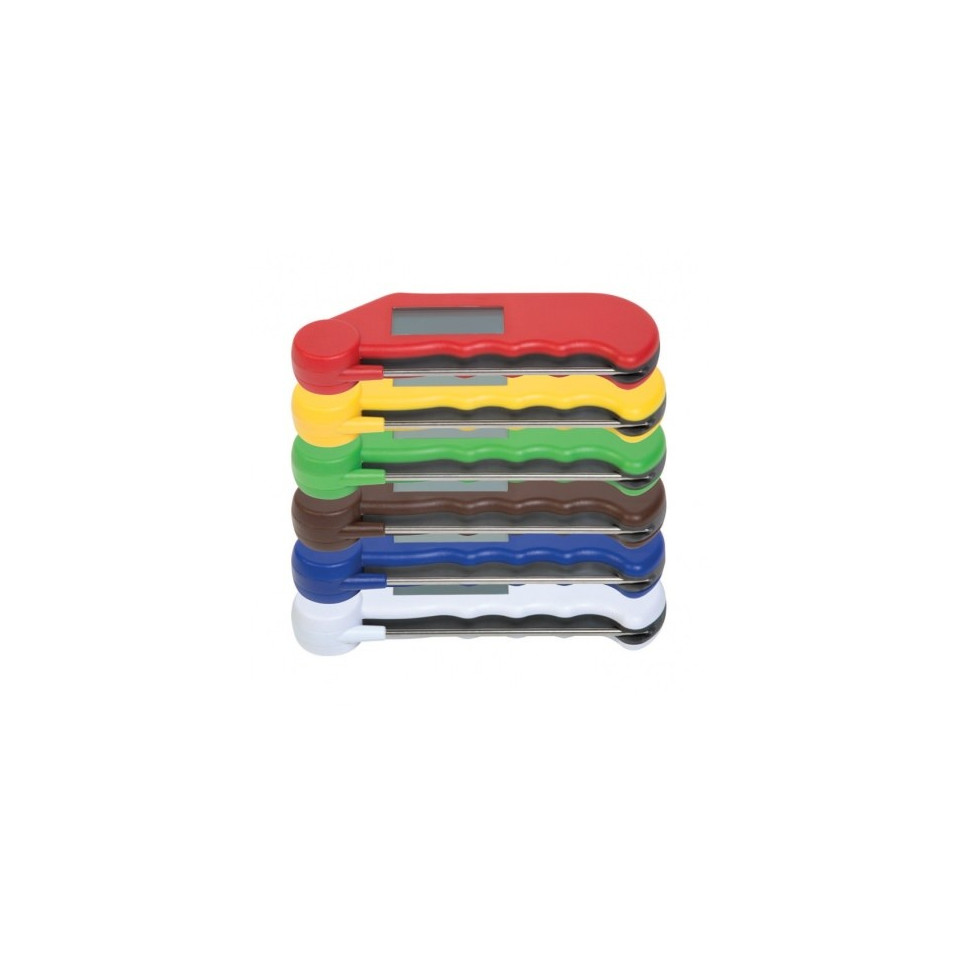 Le thermomètre à sonde pliante Gourmet résistant à l'eau est un thermomètre alimentaire einfach ze benotzen, idéal pour surveiller les températures de cuisson, de refroidissement et de conservation des aliments dans le cadre des procédures HACCP et de santé et de sécurité.