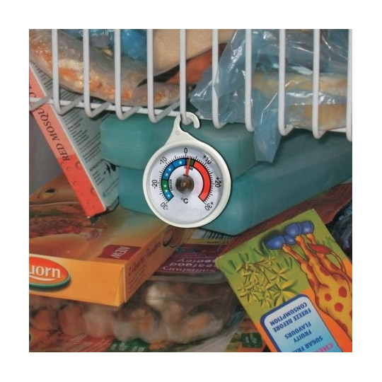Ce thermomètre pour réfrigérateur / congélateur indique une température dans la Gamme -30 bis 30 ° C dans des divisions de 1 °C.