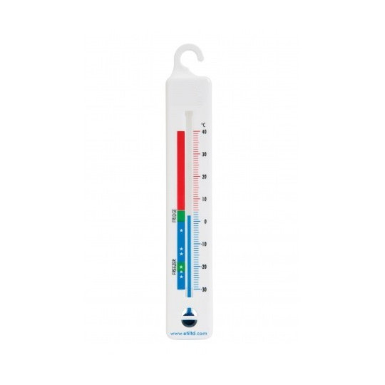 Ce thermomètre de réfrigération dispose d'un grand écran LCD et intègre deux capteurs de température; une sonde étanche à distance avec un mètre de câble PVC pour la température de l'appareil et un capteur interne pour la température ambiante. La sonde à distance peut être montée sur la paroi interne du réfrigérateur à l'aide de la ventouse ou du support de montage fourni.