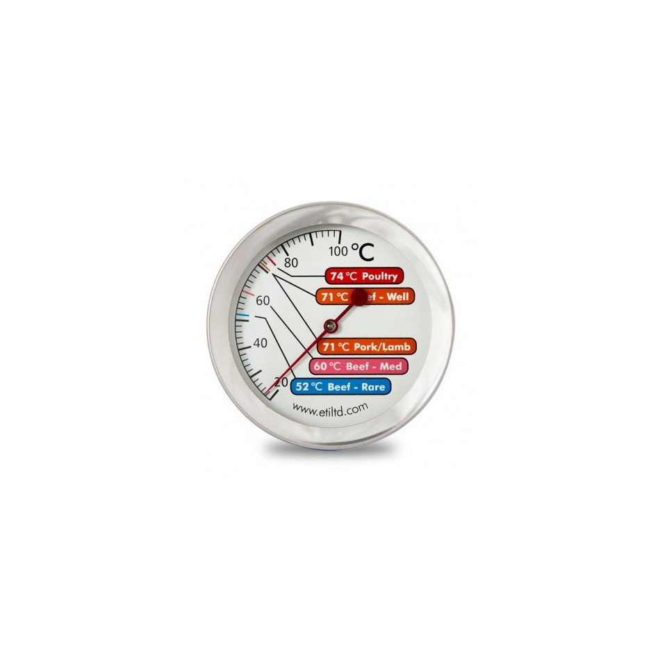 Le thermomètre indique la température sur une reechwäit 20 bis 100 ° C dans des divisions de 2 °C et fournit un moyen économique et fiable pour assurer que votre viande et vos rôtis sont cuits correctement et en toute sécurité.