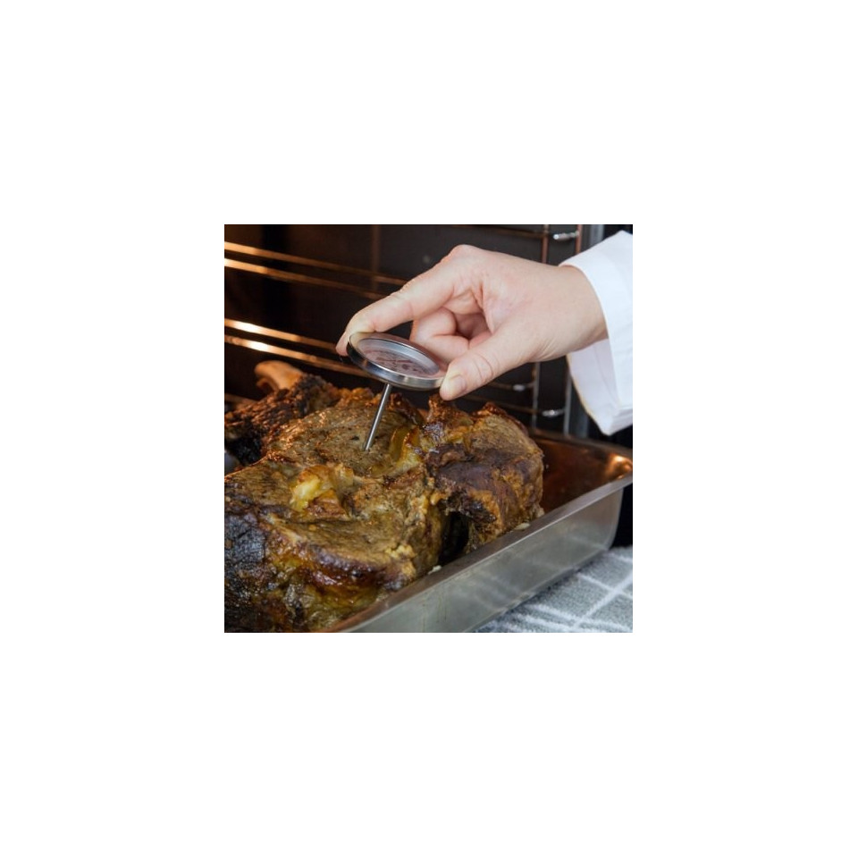 Ce thermomètre à viande est doté d'un grand cadran Ø60 mm avec une sonde pointue Ø5 x 102 mm en acier inoxydable.