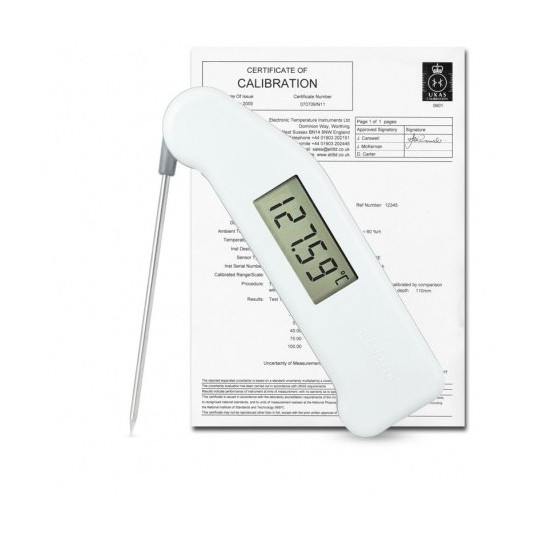 Le thermomètre d'étalonnage de référence Thermapen® est un instrument PT100 de haute précision fourni avec un certificat d'étalonnage UKAS à 5 points.