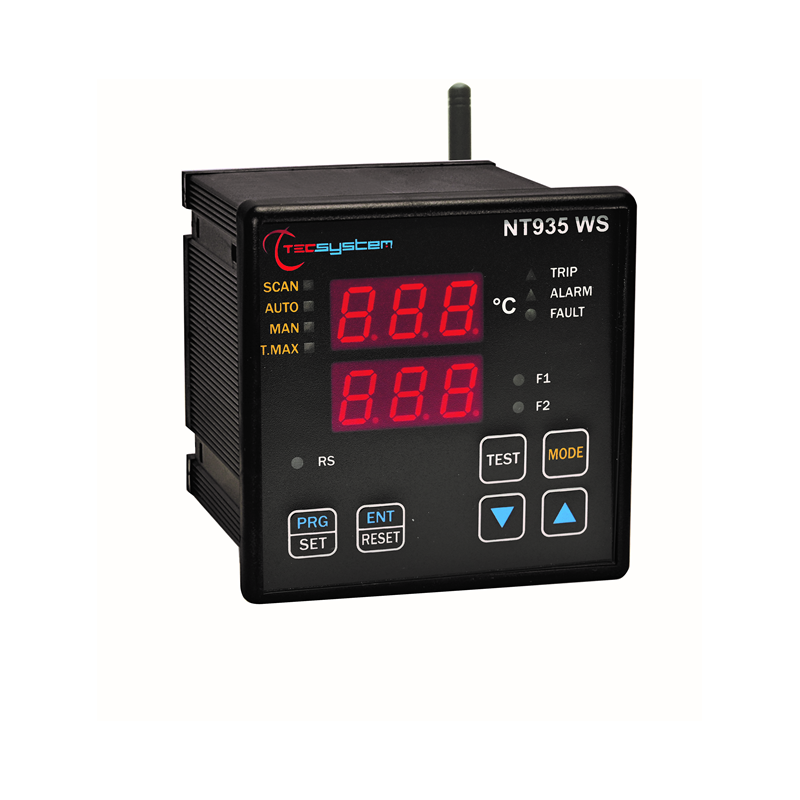 Le NT935 WS maintient les traditionnels 4 entrées Pt100 (enroulements + environnement) et 5 relais ALARM, TRIP, FAN1 - FAN 2 et FAULT; il est dédié, principalement mais pas exclusivement, au contrôle des transformateurs MT / BT.
