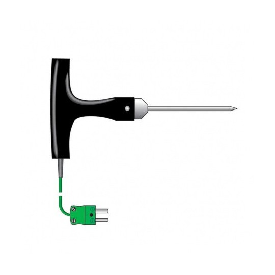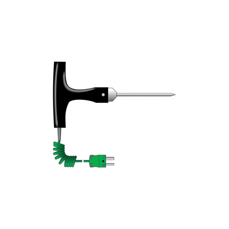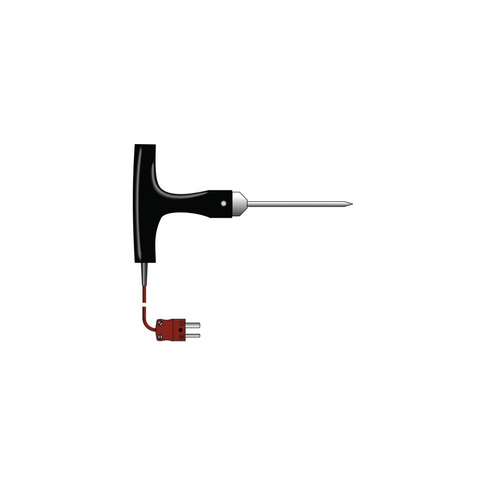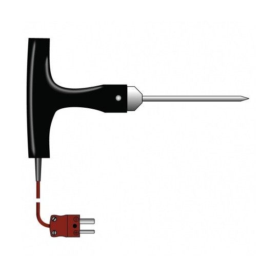 T-geformte Temperatursonde - Dës Ø4mm Edelstahl verstäerkt Nadelsonde huet e schwaarzen T-förmleche Polypropylen-Grëff.