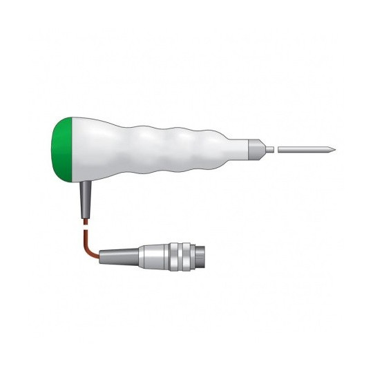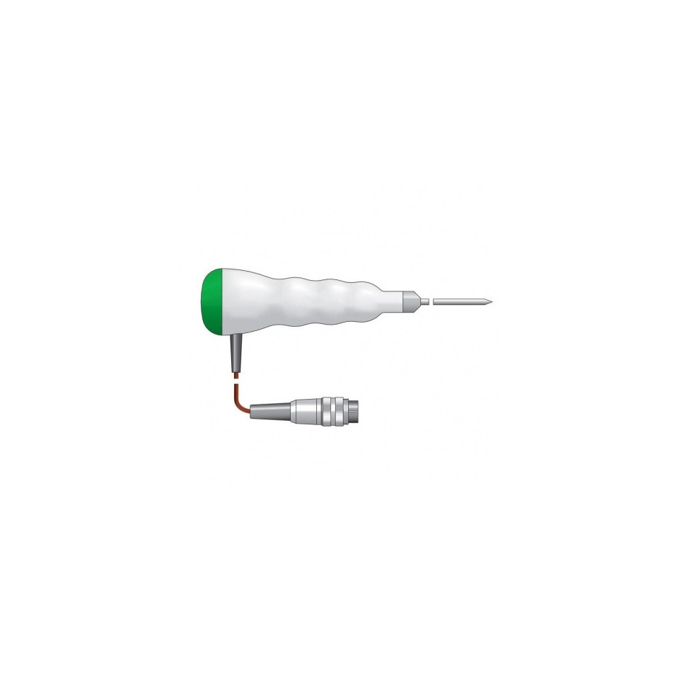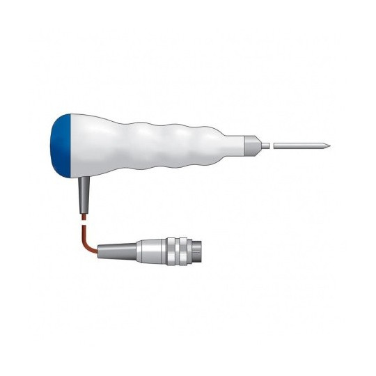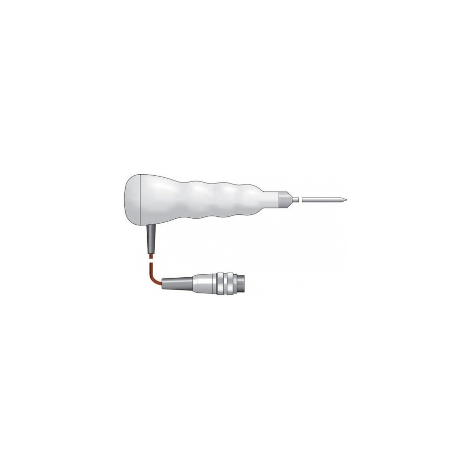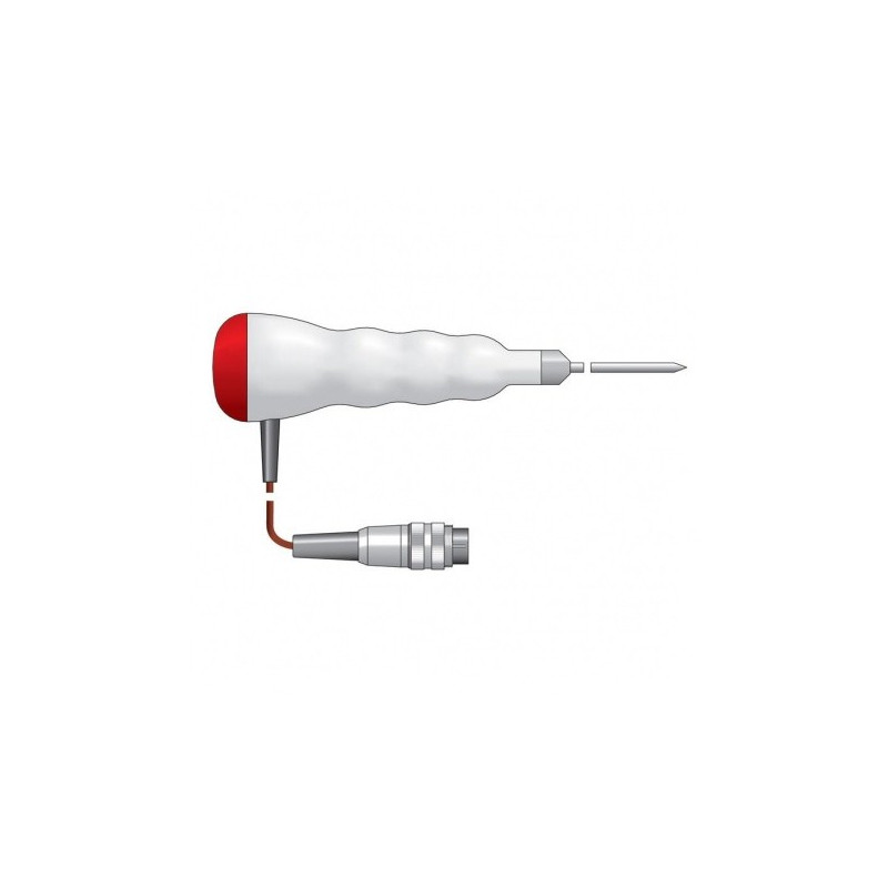 Dës Faarfkodéiert Therma 22T Thermoelement Penetratiounssond ass villsäiteg a staark an integréiert e kräftege gerippte Polypropylen-Grëff mat enger Faarfkodéierter Ennkapp - wielt w.e.g. Faarf aus Dropdown-Menü oder Faarfblocken Ideal fir vill Temperaturmiessung Uwendungen inklusiv Flëssegkeeten, Hallefschiermstoffer a käreg Material. Äntwert Zäit manner wéi fënnef Sekonnen. Sonde Temperaturbereich -75 bis 250 ° C.