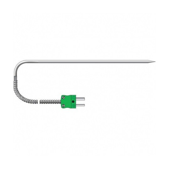 Edelstahl K Thermoelement, schaarf Penetratiounssonden, ideal fir kontinuéierlech Temperatur Iwwerwaachung an Uewen an ähnlechen Uwendungen. Geliwwert mat zwee Meter geflécktem Edelstahlkabel oder geschirrten Edelstahlkabel. Äntwert Zäit manner wéi véier Sekonnen. Sondstemperaturbereich -50 bis 250 ° C (gefléckt) oder -50 bis 350 ° C (geschützt). Sond Dimensiounen Ø4 x 225 mm