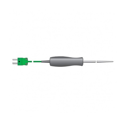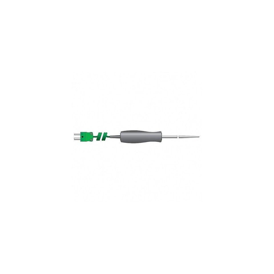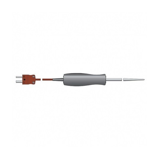 Ideal fir Temperaturmiessung an enger grousser Villfalt vun Uwendungen, och Temperaturmiessunge vu Flëssegkeeten a Hallefschiermstoffer. Äntwert Zäit manner wéi zwou Sekonnen. Sonde Temperaturbereich -75 bis 250 ° C. Sond Dimensioune sinn 3,3 x 100 mm.
