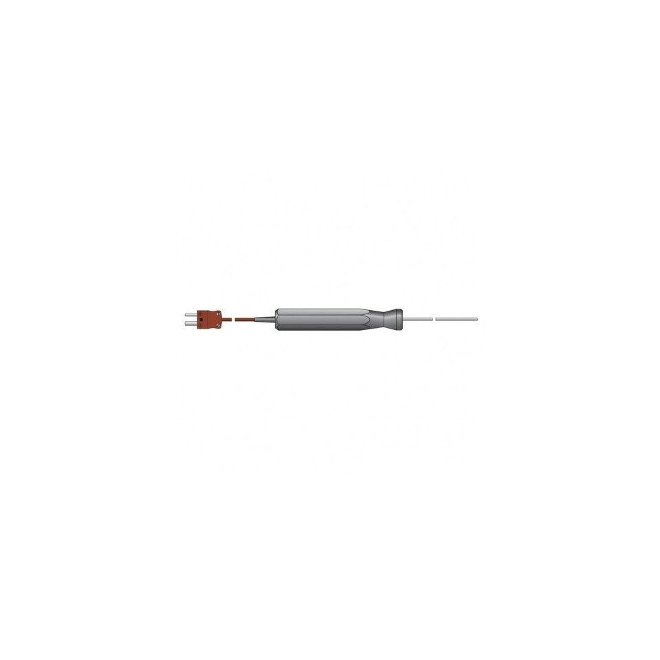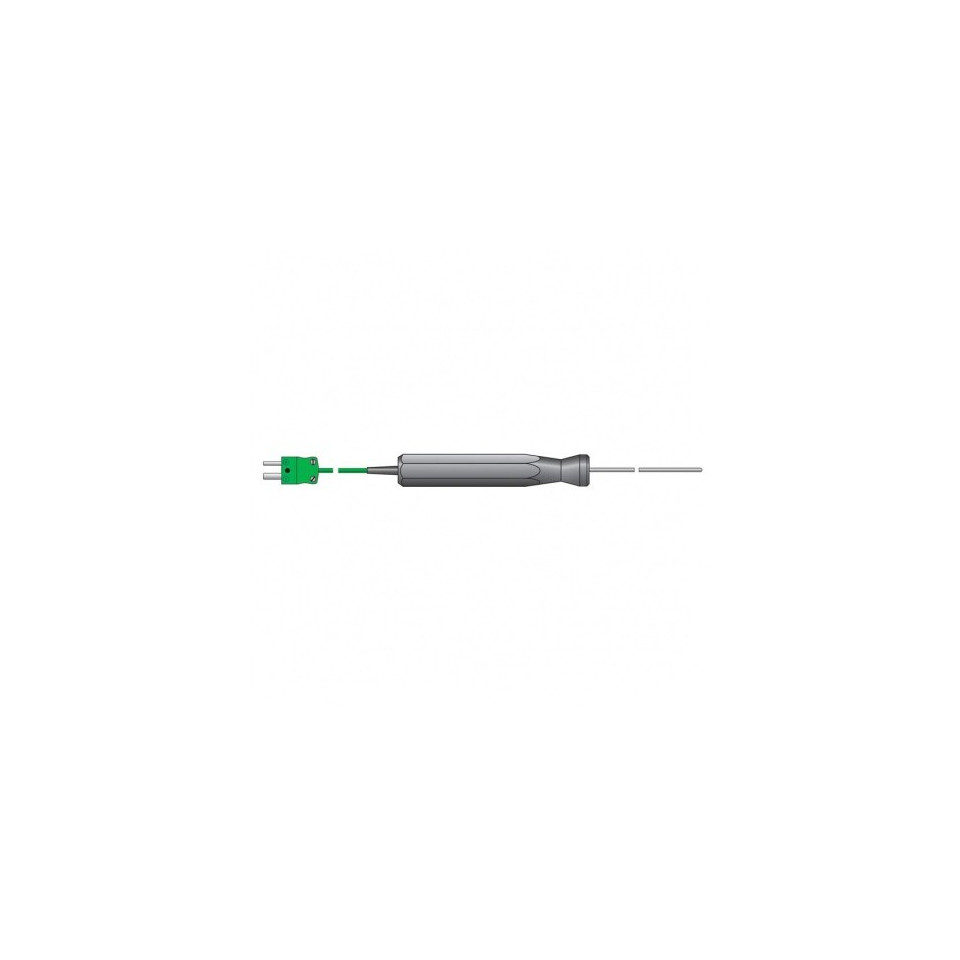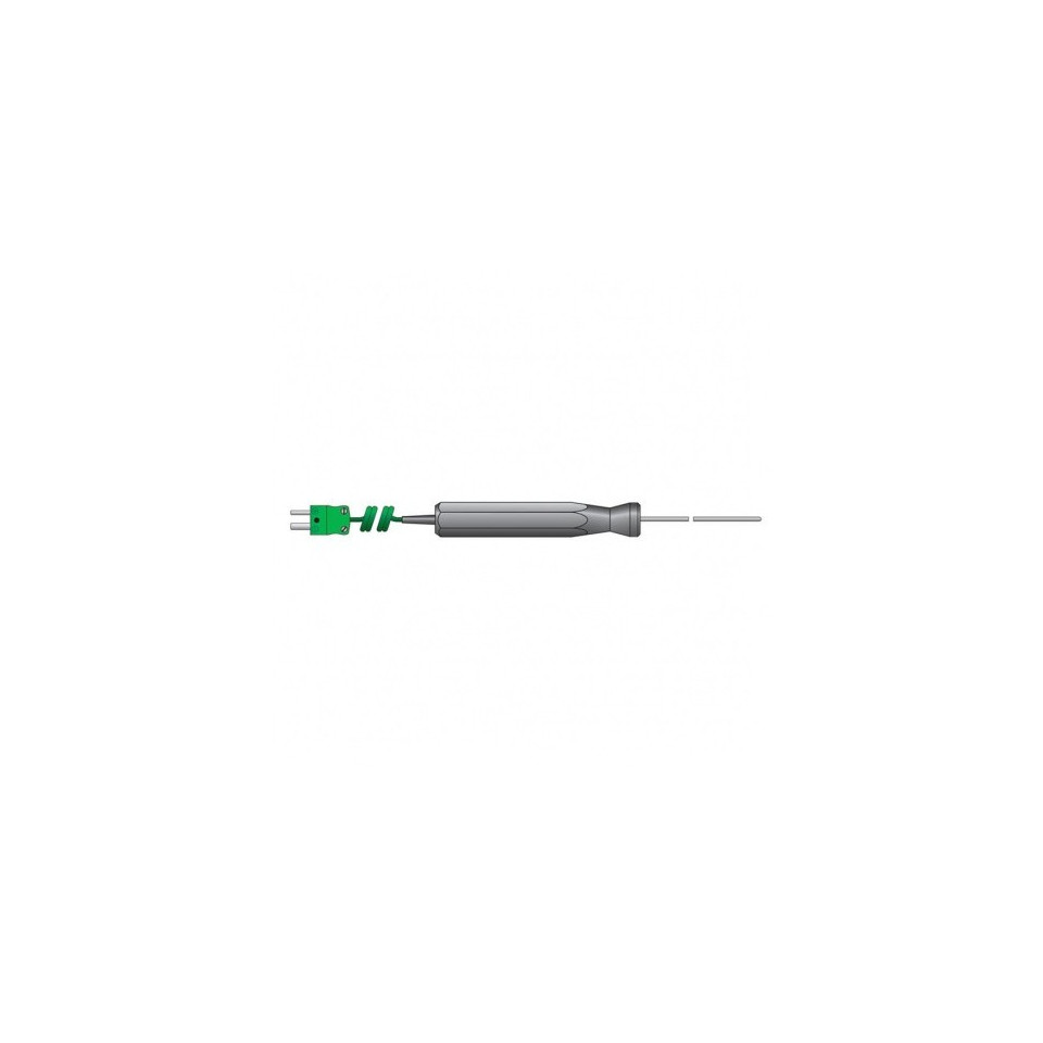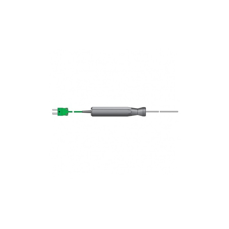 Et huet e Sondenduerchmiesser vun 1,8 mm an eng Sondelängt vun 130 mm. Äntwert Zäit manner wéi eng Sekonn. Temperaturbereich -75 bis 250 ° C. Verfügbar an der Type K oder der Type T. Versioun gewéckelt Drot verfügbar.