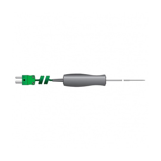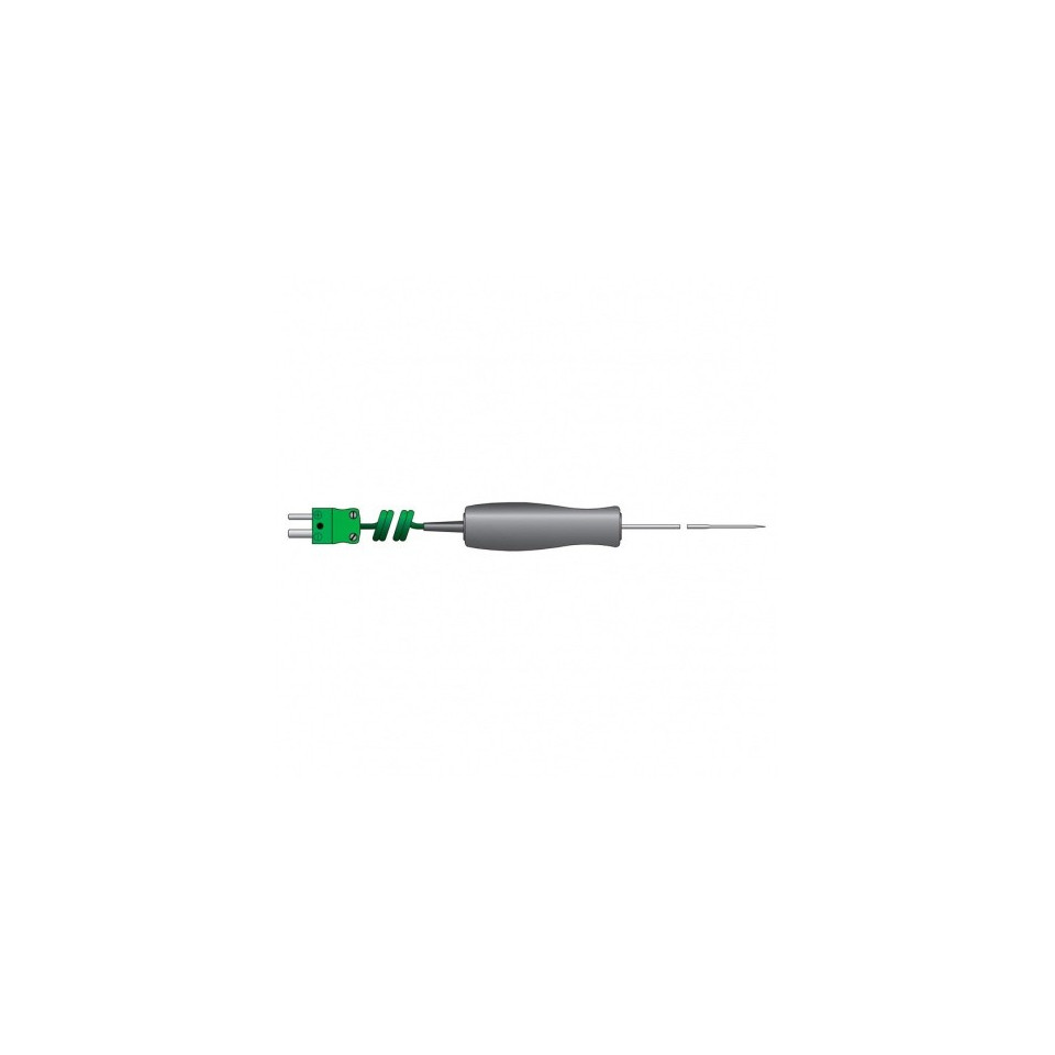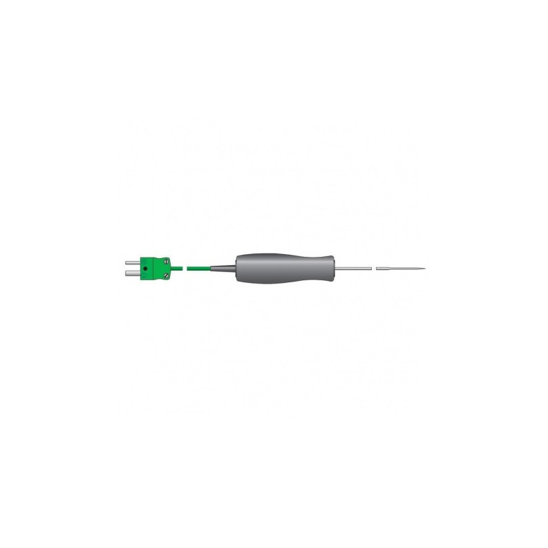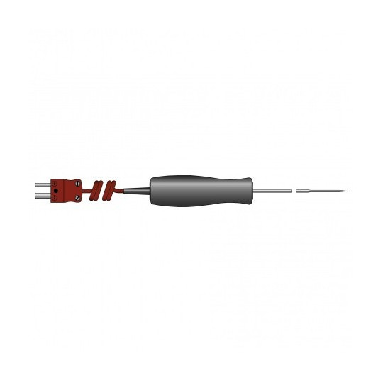 Geeignet fir Uschloss un eng Rei ETI Thermometeren, et huet eng Äntwertzäit vu manner wéi zwou Sekonnen. Temperaturberäich vun der Sond -75 bis 250 ° C. D'Dimensioune vun der Sond sinn 3,3 x 100 mm.