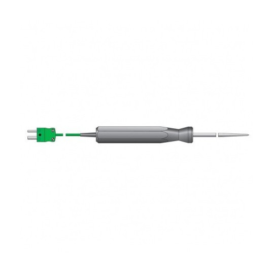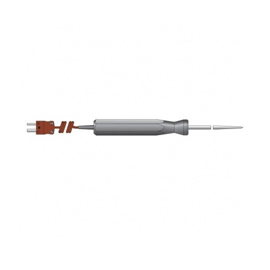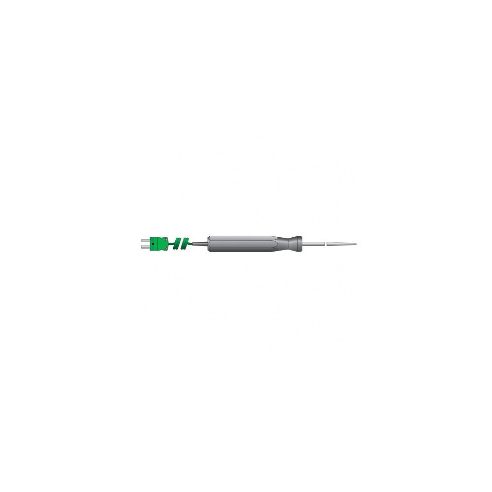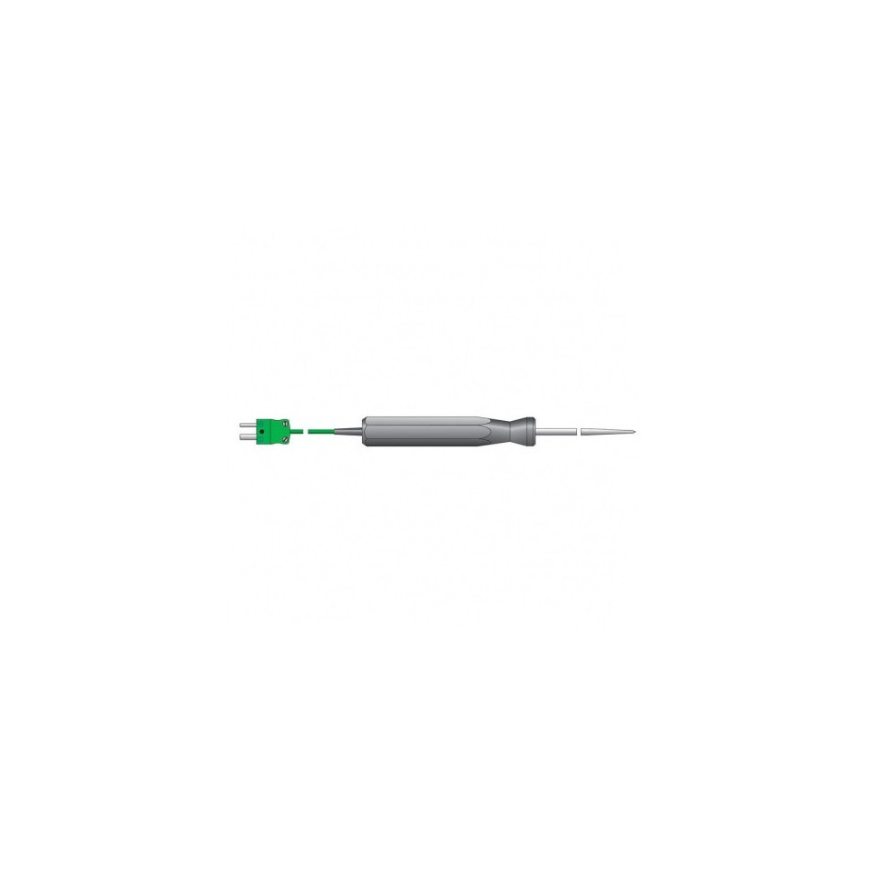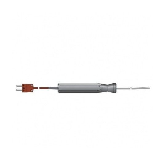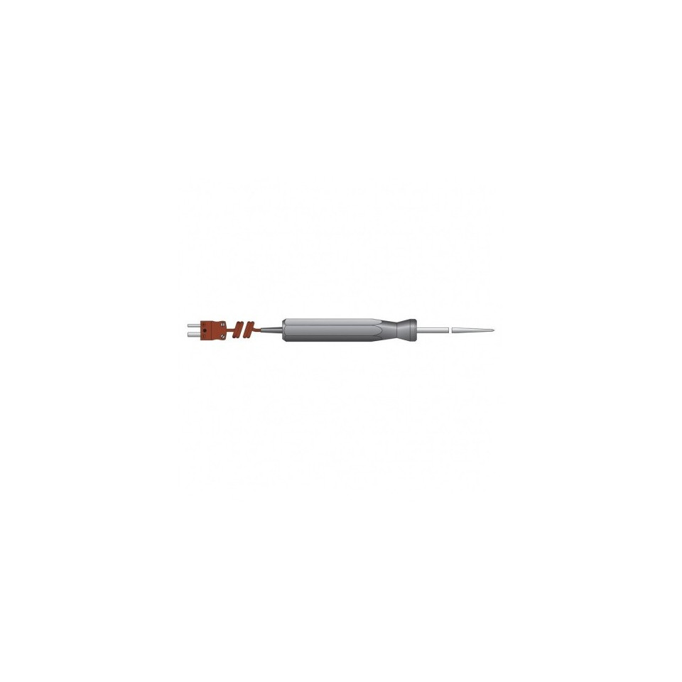 Ideal fir d'Temperatur an enger grousser Variatioun vu Programmer ze moossen, och Flëssegkeeten an Hallefschiermstoffer. Et huet e Sondenduerchmiesser vun 3,3 mm, d'Sondlängt ass 300 mm. Äntwert Zäit manner wéi zwou Sekonnen. Maximal Sondetemperatur 250 ° C. Kann op all ETI Thermometer mat engem Thermoelementstecker montéiert ginn. Spullkabel Versioun verfügbar (323-168)